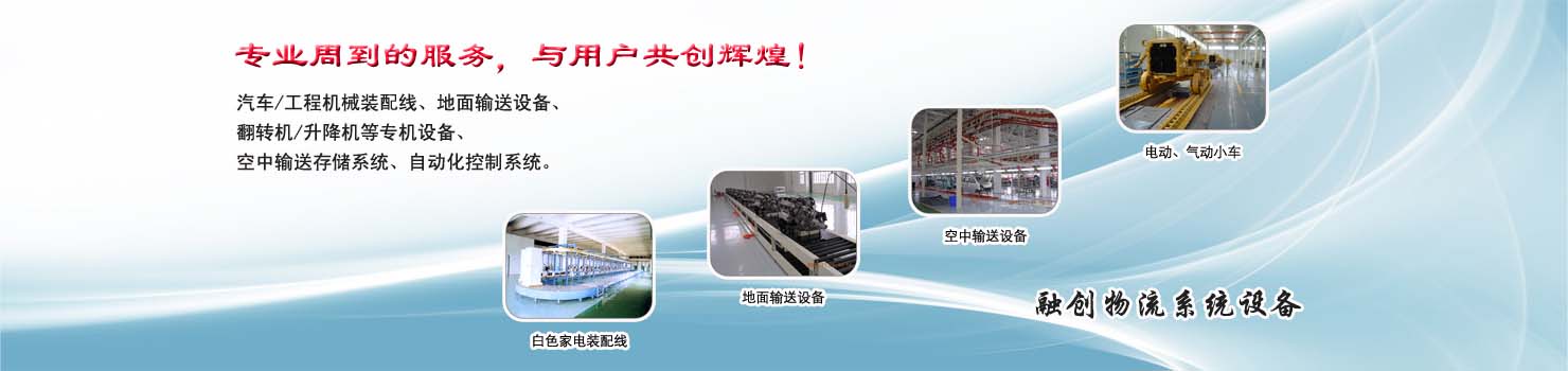 無錫市融創(chuàng)物流系統(tǒng)設備有限公司專業(yè)設計制造翻轉機,裝配翻轉機設備,各種生產(chǎn)線總裝線部裝線,是翻轉機的專業(yè)設計制造廠家,最新翻轉機價格?來自無錫融創(chuàng);無錫融創(chuàng)公司主要產(chǎn)品系列:裝配翻轉機設備、升降設備、焊接裝配工裝設備,工程機械總裝部裝線、卡車總裝及部件裝配線、轎車總裝及部件裝配線、白色家電裝配線、農(nóng)業(yè)機械裝配生產(chǎn)線、地面輸送設備、空中輸送設備、電動氣動小車等。無錫融創(chuàng)生產(chǎn)的各類專業(yè)成套設備已廣泛應用于轎車、卡車、客車、各類工程機械、發(fā)動機、車橋、農(nóng)業(yè)機械、郵政、家電等行業(yè),特別在工程機械產(chǎn)品裝配線、卡車生產(chǎn)裝配線領域,是國內(nèi)最大的設備供應商之一。